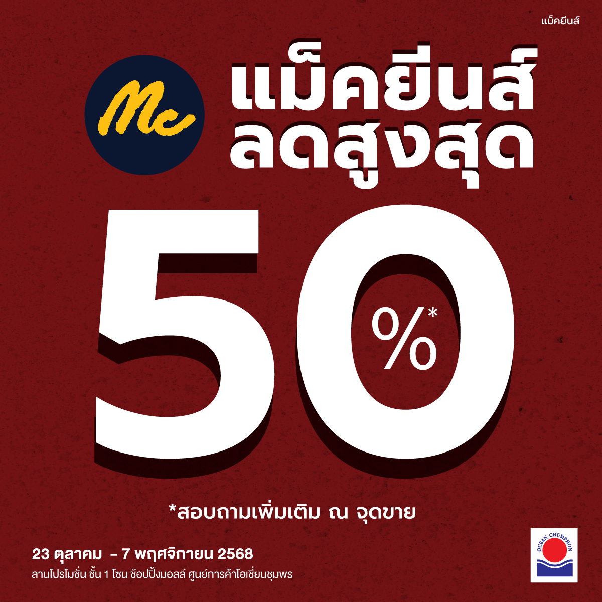 พบโปรโมชั่นได้แล้ว วันนี้ – 30 พฤศจิกายน 2568 ณ ลานโปรโมชั่น ชั้น 1 โซนช้อปปิ้งมอลล์ ศูนย์การค้าโอเชี่ยนชุมพร