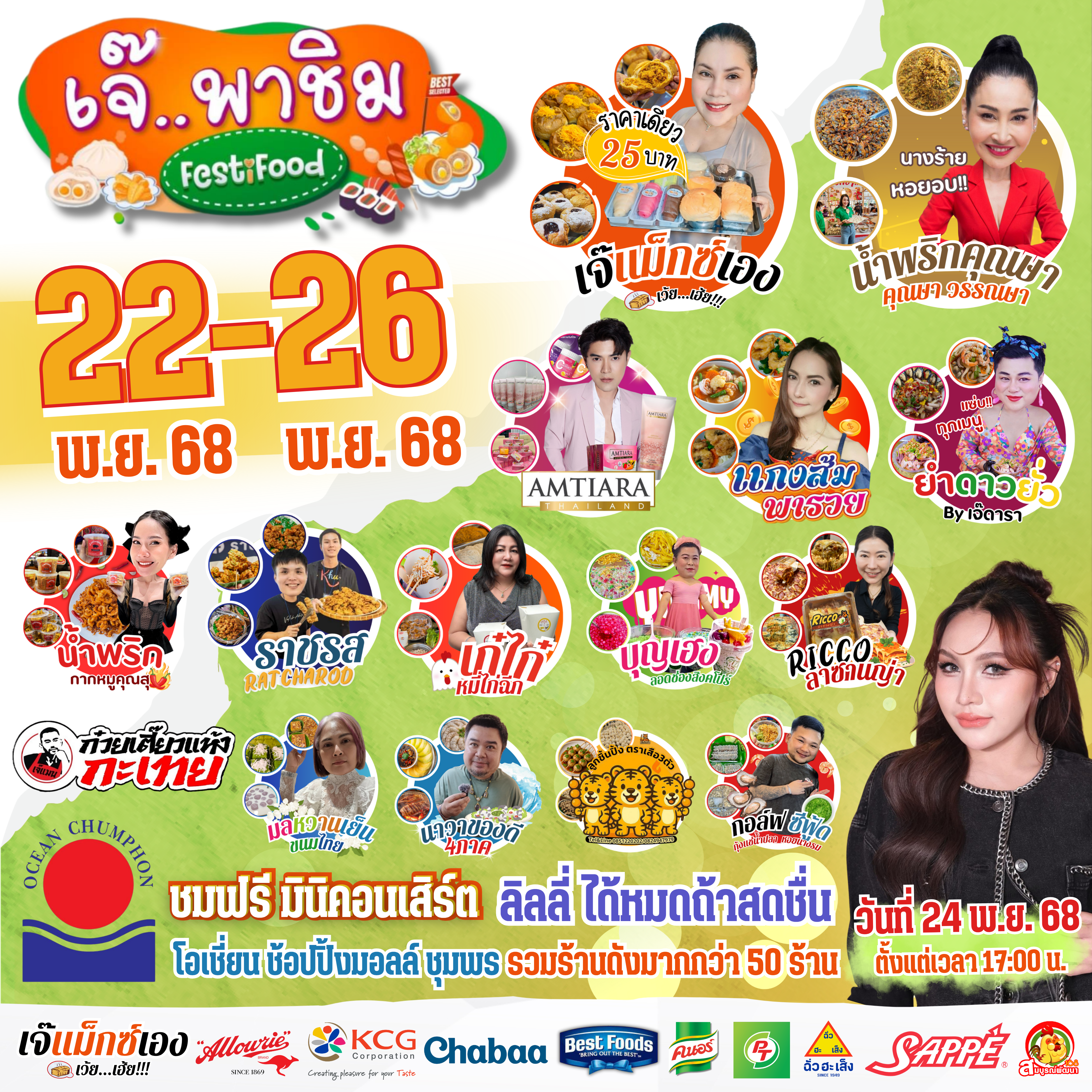 “เจ๊พาชิม” บุกศูนย์การค้าโอเชี่ยนชุมพร รวมร้านเด็ด ร้านดัง ร้านดารา ร้าน TikTok กว่า 50 ร้าน ทั้งของคาว ของหวาน ของอร่อยเพียบ